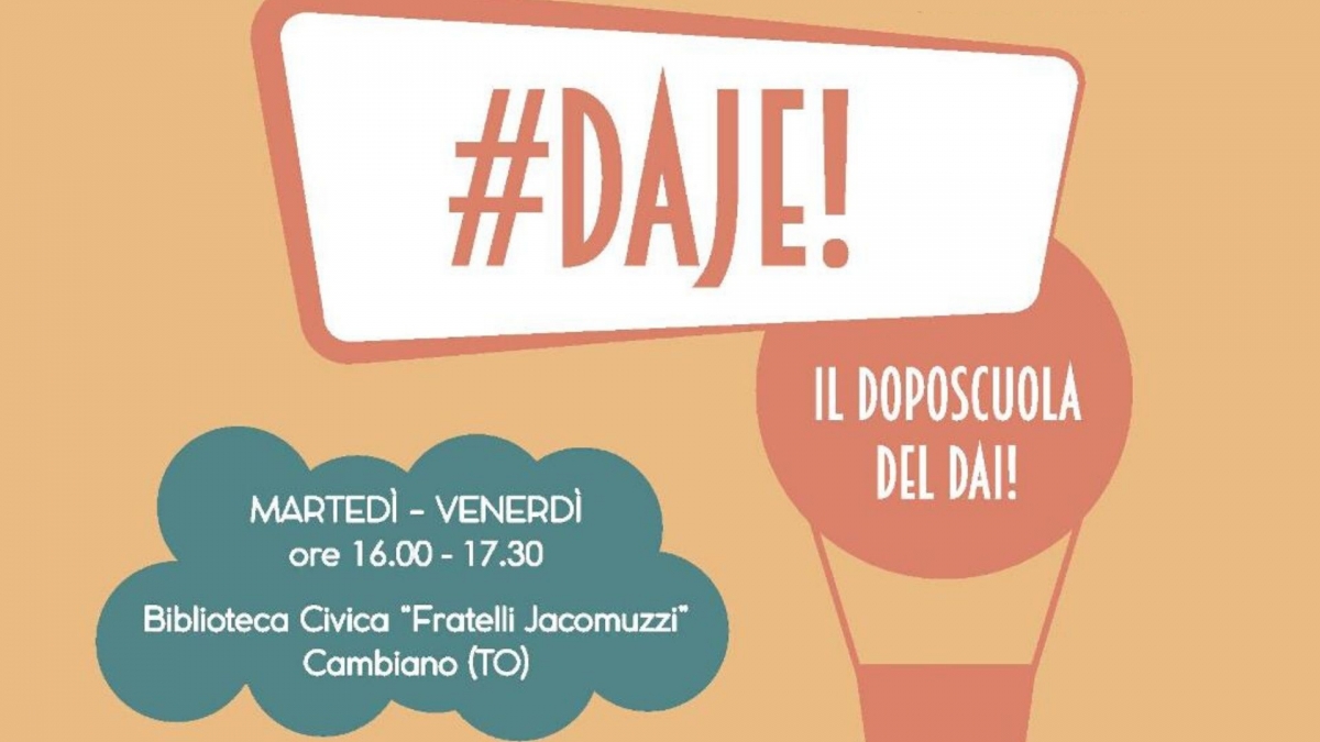 A partire da Martedì 5 Novembre il Comune e la Biblioteca di Cambiano, in collaborazione con l’Associazione DAI! di Santena, metteranno a disposizione un doposcuola gratuito rivolto agli studenti cambianesi di seconda e terzia media e prima e seconda superiore.