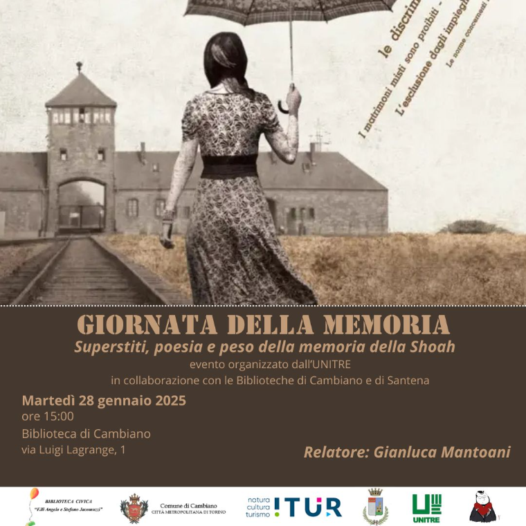 Il 28 ๐๐๐๐๐๐๐ 2025, alle ๐๐๐ 15:00, la Biblioteca Civica di Cambiano ospita un evento speciale, organizzato dall’UNITRE, per ricordare le vittime e i superstiti della Shoah.