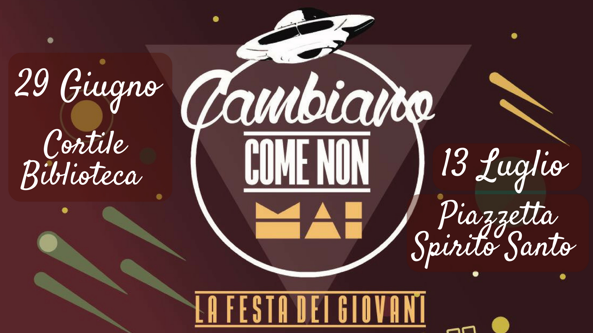 Venerdรฌ 29 Giugno 2018 ore 21,00, primo appuntamento con la festa giovani organizzata dal Comune di Cambiano in collaborazione con Pro Loco Cambiano e associazione DAI di Santena.