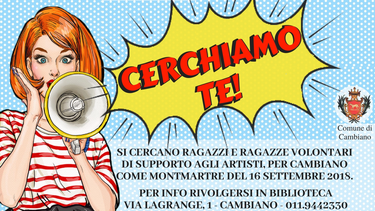 Cerchiamo ragazzi e ragazze volontari, per la nuova edizione di “Cambiano come Montmartre”.