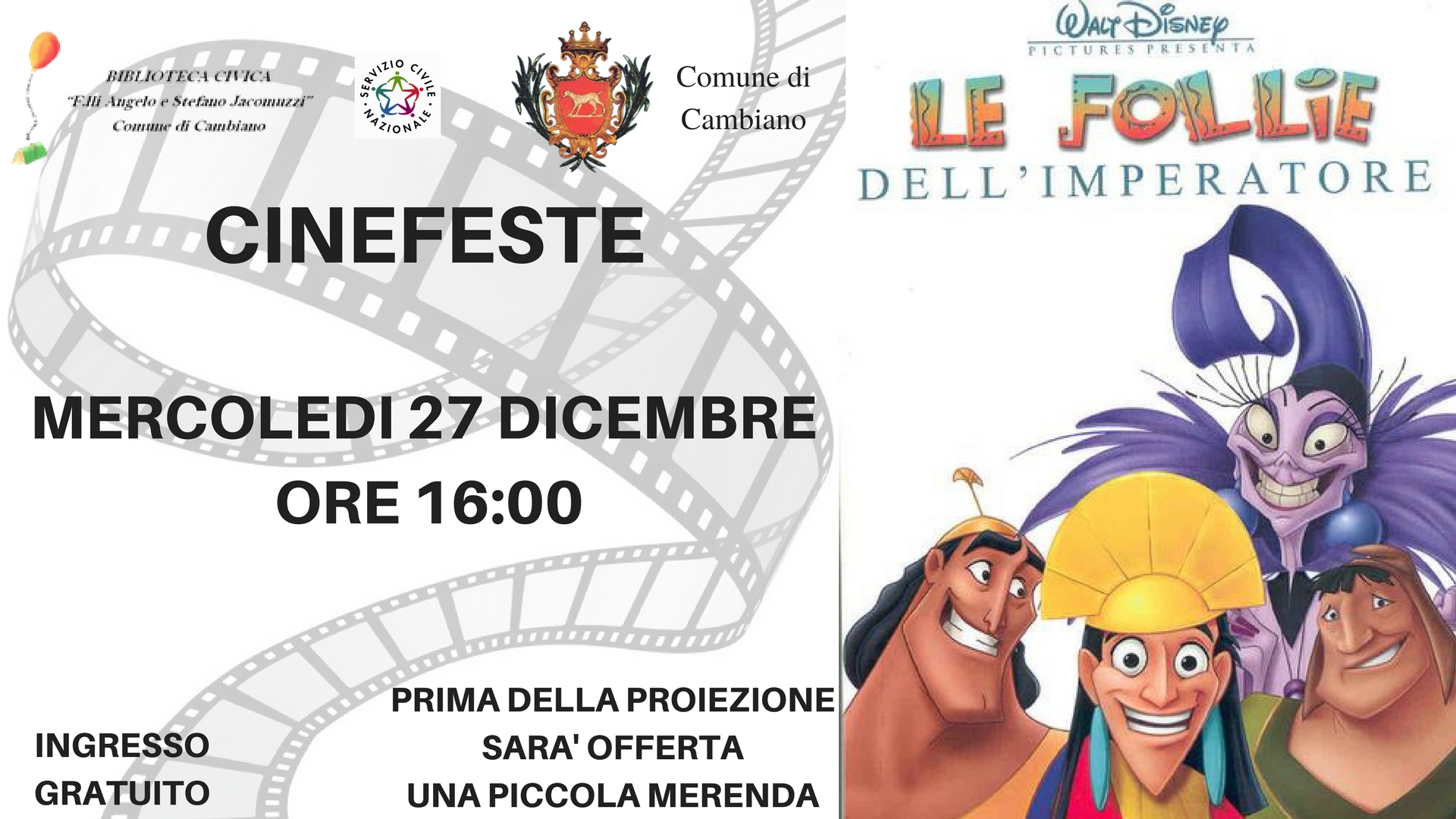 Primo appuntamento Mercoledรฌ 27 Dicembre alle ore 16,00 con “Le follie dell’Imperatore”.