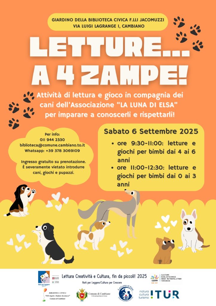 La Biblioteca Civica F.lli Jacomuzzi di Cambiano, insieme allโAssociazione ๐ณ๐ ๐ณ๐๐๐ ๐ ๐ ๐ฌ๐๐๐, vi invita a un evento speciale fatto di letture, giochi eโฆ musetti pelosi! Unโoccasione unica per i piรน piccoli per imparare a conoscere e rispettare i nostri amici a quattro zampe.