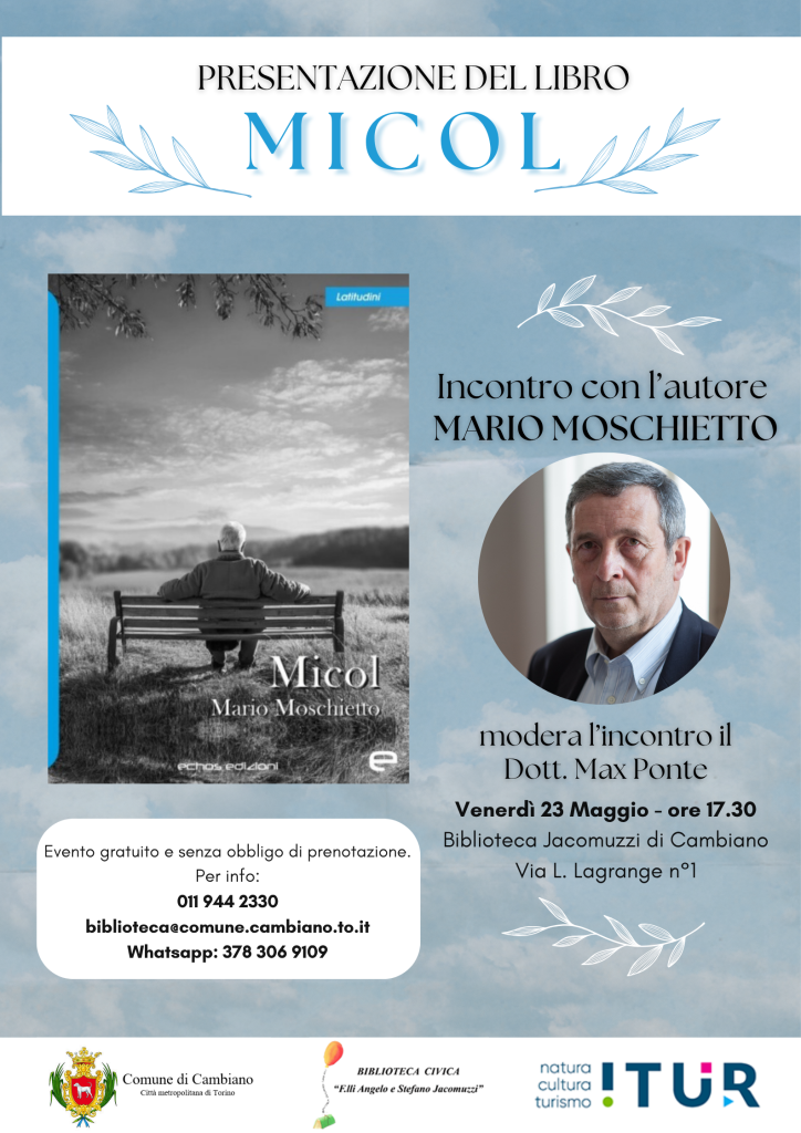 La Biblioteca Civica di Cambiano รจ lieta di ospitare la presentazione di ๐ด๐๐๐๐, il nuovo libro dell’autore ๐ ๐ฎ๐ฟ๐ถ๐ผ ๐ ๐ผ๐๐ฐ๐ต๐ถ๐ฒ๐๐๐ผ.