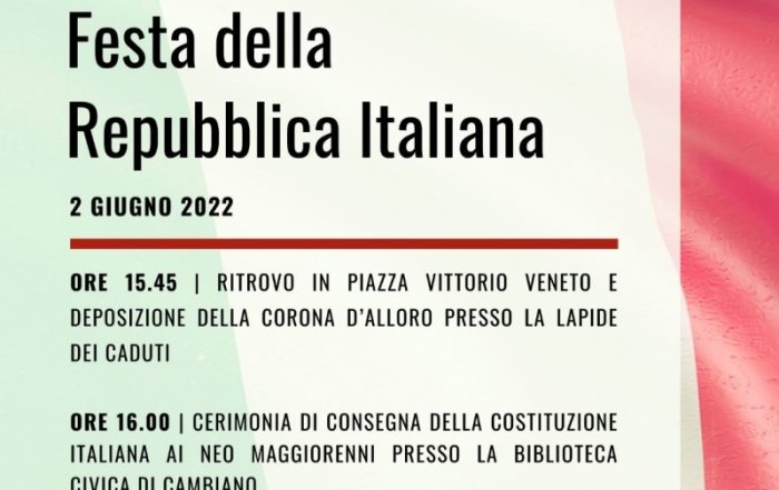 2 giugno 2022: la Festa della Repubblica italiana a Cambiano