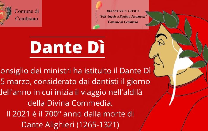 Per celebrare il Dante Dì, la Biblioteca di Cambiano, grazie alla preziosissima collaborazione dall’amico Vincenzo Jacomuzzi e la casa editrice [...]