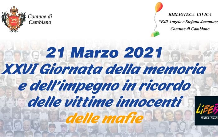 21 marzo 2021: XXVI Giornata della memoria e dell’impegno in ricordo delle vittime innocenti delle mafie.