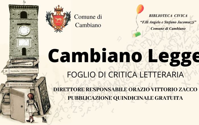 OGLIO DI CRITICA LETTERARIA DIRETTORE RESPONSABILE ORAZIO VITTORIO ZACCO PUBBLICAZIONE QUINDICINALE GRATUITA La Biblioteca di Cambiano, grazie alla preziosa collaborazione [...]